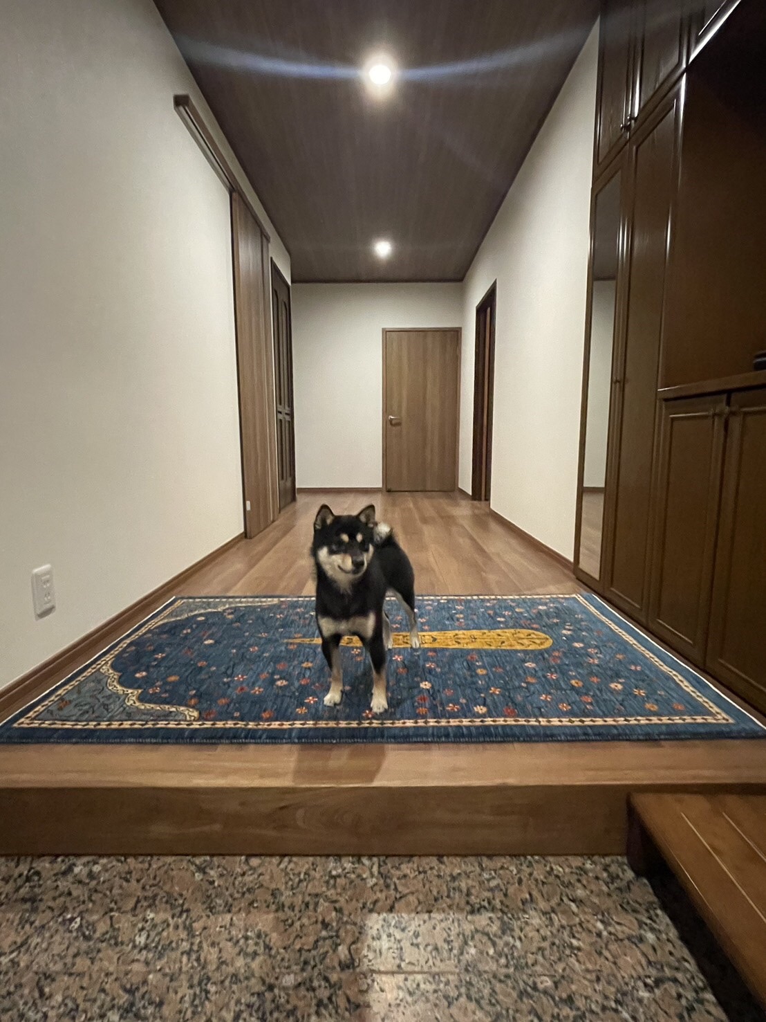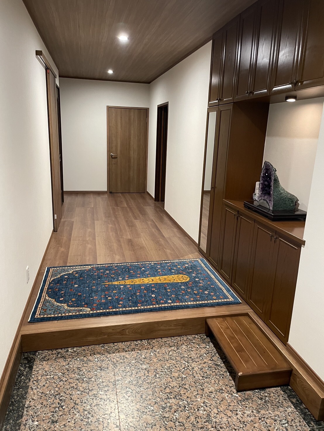 玄関には、ギャッベの最高クオリティの青いルリバフを敷き、リビングには四季を表す4色の鮮やかな