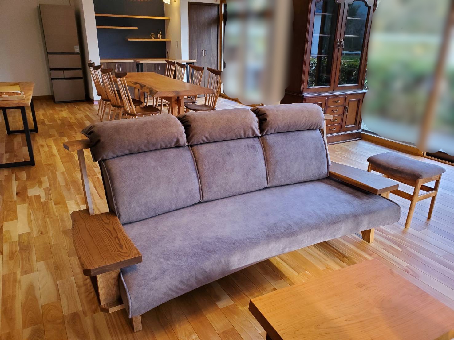 和室をリフォームしたお部屋に、ゆったりした3人掛けソファとダイニングチェアをお届けさせていただきました。