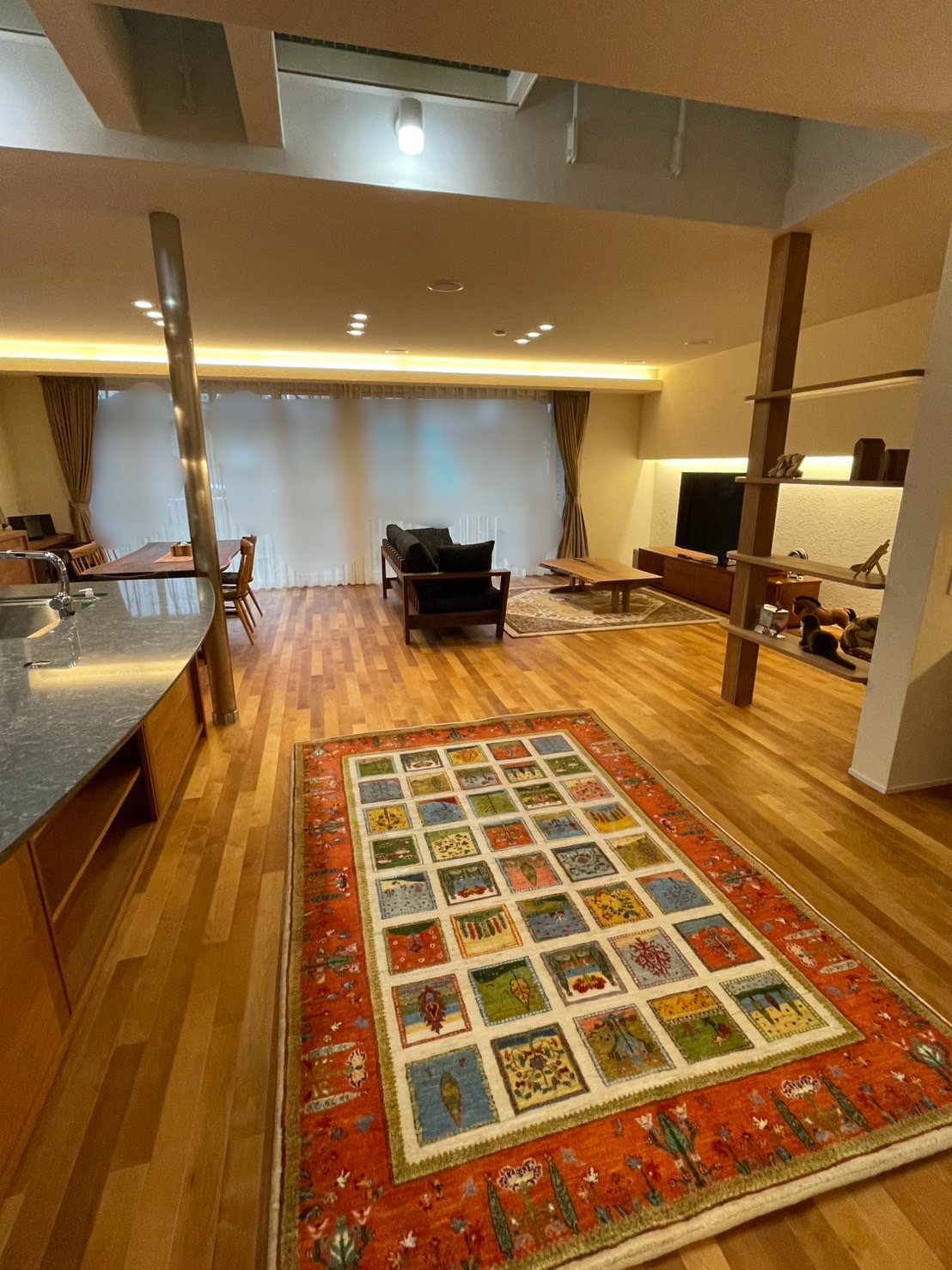 お部屋にもお気に入りの様々な絨毯を敷いて楽しまれているお客様。