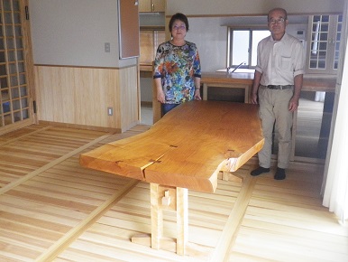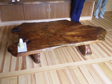 衝立を座卓に再生 ケヤキ材 一枚板