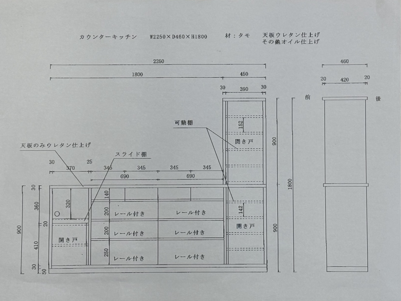 キッチンとリビングにタモ材でオーダーで制作したボードを配達させていただきました。